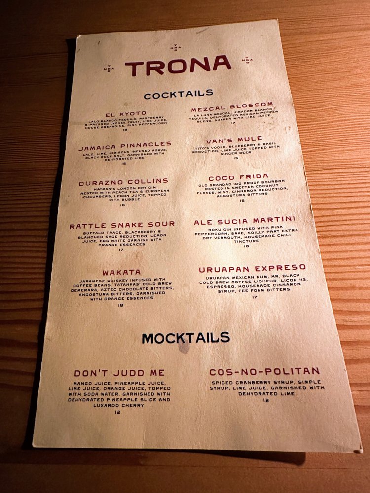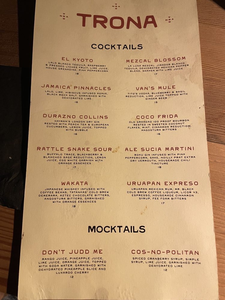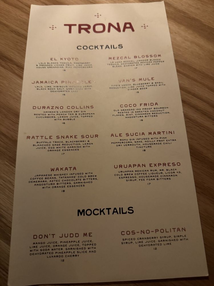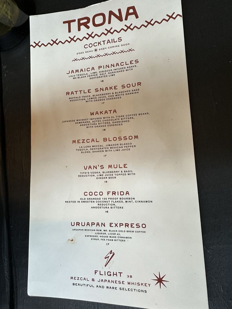 Trona, located in Austin, TX, offers a unique speakeasy experience with eclectic decor and top-notch service. Known for its creative and tasty cocktails, such as the Mezcal Blossom and Jan 1, 2001 Tokyo, Trona provides a memorable dining experience. Customers rave about the ambiance, with outdoor seating available and a cozy bar area. While reservations are recommended due to limited seating, the intimate setting adds to the allure of this hidden gem. The innovative drinks, kind bartenders, and Mexico City-inspired decor make Trona a must-visit for those seeking a fun and lively atmosphere. Experience the sexy vibes and delicious mezcal-based cocktails at Trona for an unforgettable dining experience.